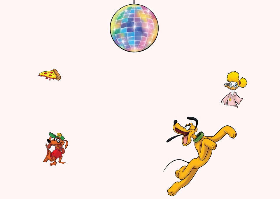 Join the party with Mickey and all his friends! They have all the ingredients for a good party: great food, great friends and of course, the party spirit. But something has made them giggle while showing off their dance moves. What could have happened on the other side of the dancefloor?