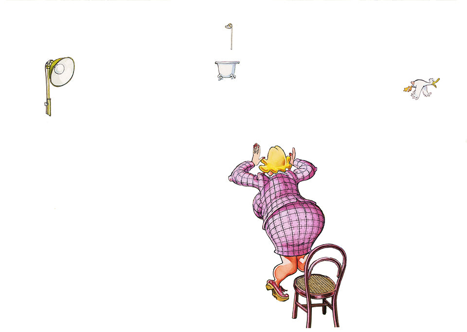 Imagine you are the horrified lady and try to imagine the course of the cannonball and what disaster it’s caused – that is what you are puzzling.