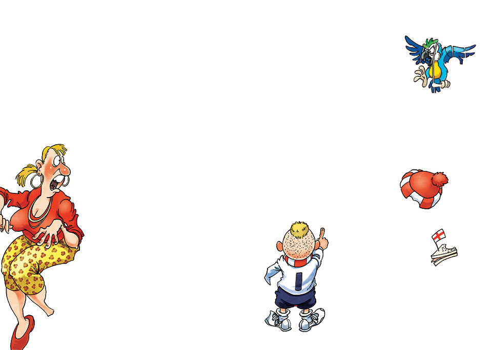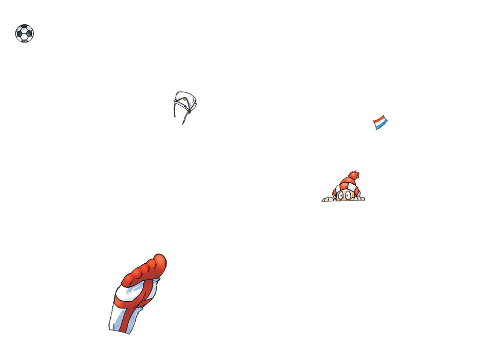 La fièvre du ballon rond a envahi tout le pays et cette famille est en train d’encourager son équipe préférée à la télévision lors de la Coupe Mondiale. Les voilà équipés de pied en cap avec les écharpes, les t-shirts et les bonnets aux couleurs de l’équipe, même les pantoufles de papy sont au diapason. Mais, alors que le gardien de but des adversaires shoote sur le ballon, l’avant-droit est fasciné par quelque chose se passant derrière la famille. Et voilà le ballon qui le percute sur l’occiput !