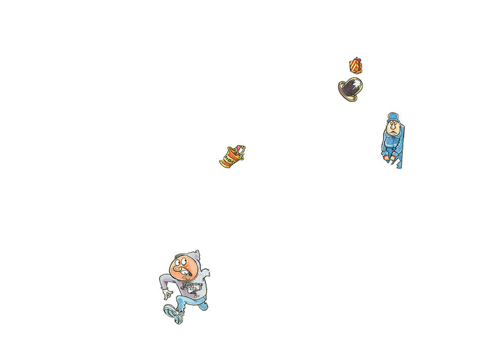Probeer je voor te stellen dat jij de vrouw bent in de oranje jas en met de boodschappentas: wat zij vanaf daar kan zien, is wat jij moet puzzelen. Gebruik je fantasie en de aanwijzingen op de puzzeldoos om er achter te komen wat er gebeurd is.