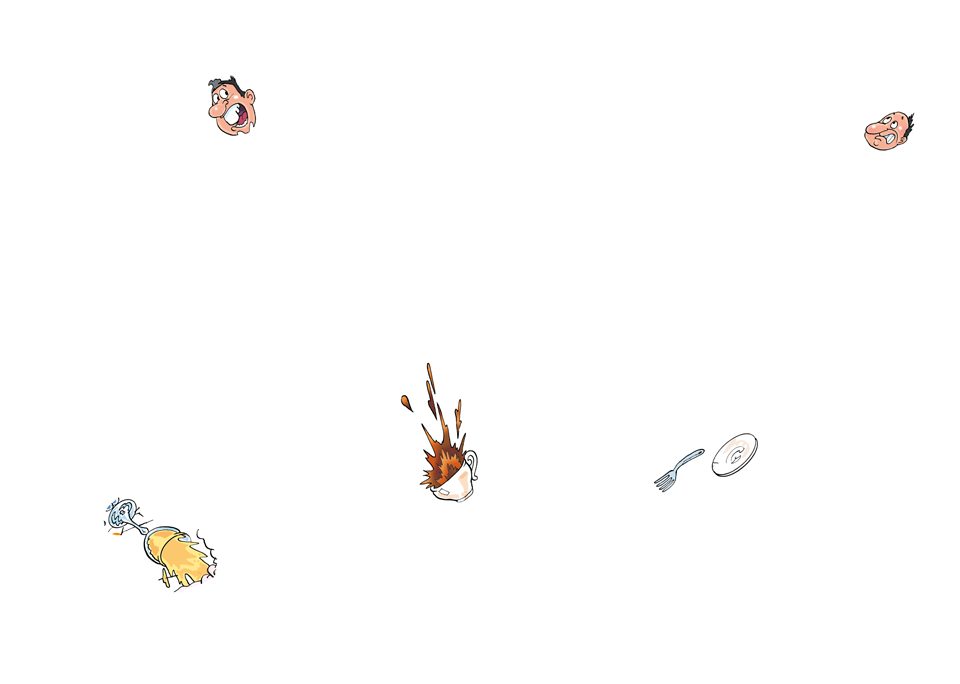 It’s busy, busy in the bistro on Date Night. Couples are celebrating in their own special way with more waiting at the door. Orders are coming thick and fast as the kitchen tries to cope. But watch out! What happens when the waiter with the lobster and crab platter goes splatter?